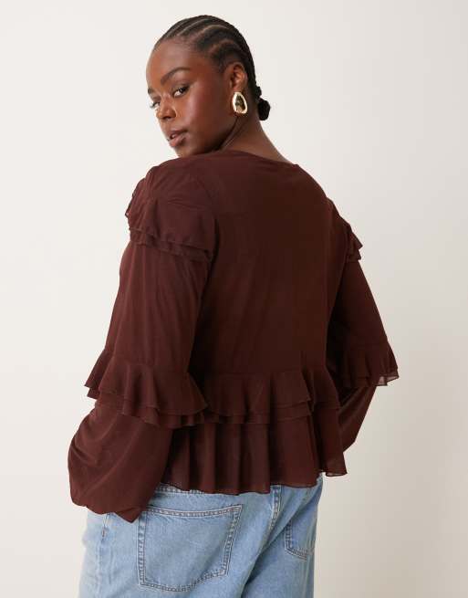 Product Name: Chocolate mesh ruffle blouse sales