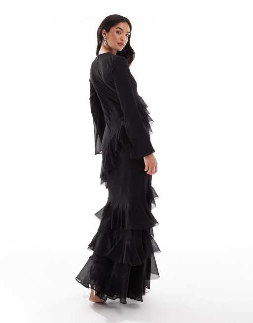 Product Name: Asos black ruffle dress sales
