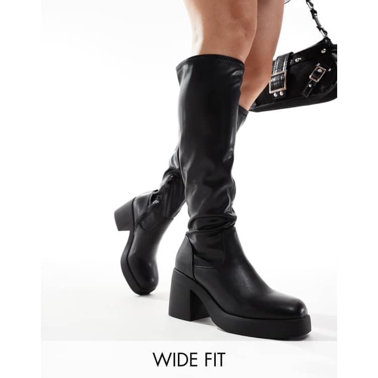 Product Name: Girls black knee high chunky block heel boots sales