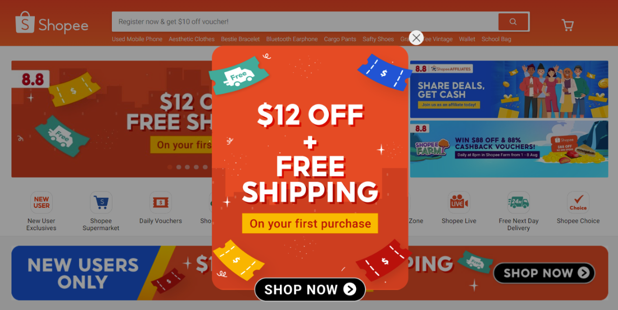 Product Name: Shopee first time user voucher sales