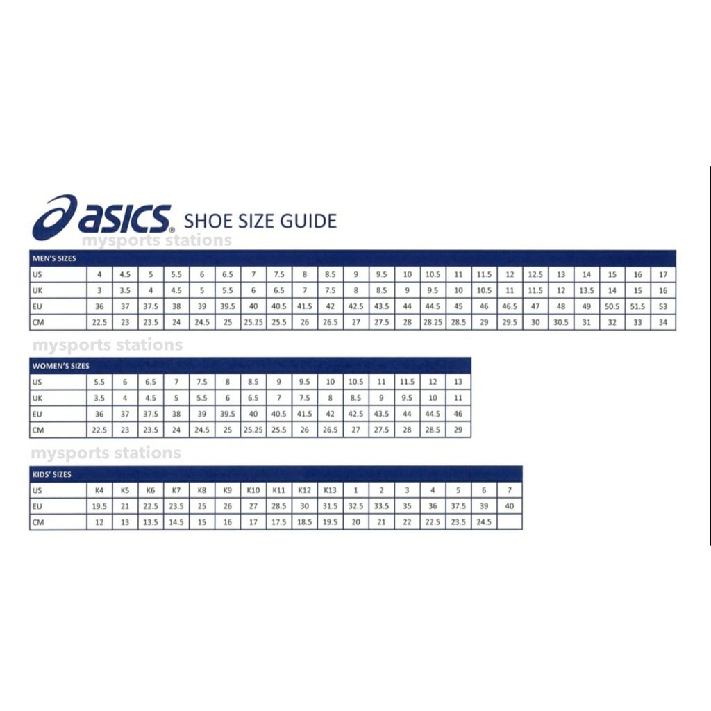 Product Name: Asics trainers size guide sales